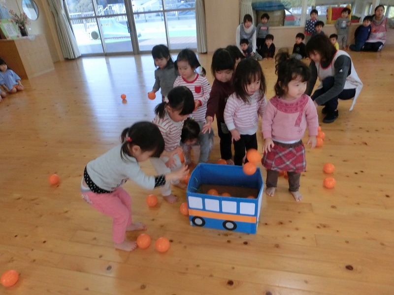 2月22日 2月の誕生会♪ 今日は、2月のお誕生会が行われました。 ドキドキしながらも、上手にインタビューに答えていました。 ひつじのショーンとくまさんのメダル、とても嬉しそうにしていました(^O^) 「玉入れゲーム」では、悔しくて泣いたり、大喜びしたり色々な姿を見ることが出来ましたよ。 2月生まれのお友だち、おたんじょうびおめでとうございます♪