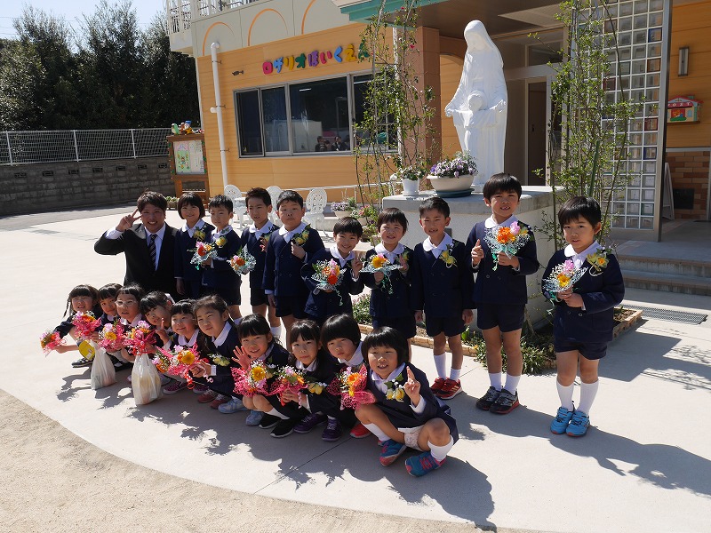 3月10日 卒園式 3月10日(土)は、雲一つない青空の下、卒園式が行われました。 この一年でさらに大きく成長したさくらぐみさんたち。 キラキラとても輝いていて、かっこよかったです! 小学校へ行ってもロザリオ保育園で過ごした日々を忘れず、ニコニコ笑顔で毎日過ごしてほしいと思います(^O^) さくらぐみさん、ご卒園おめでとうございます!!