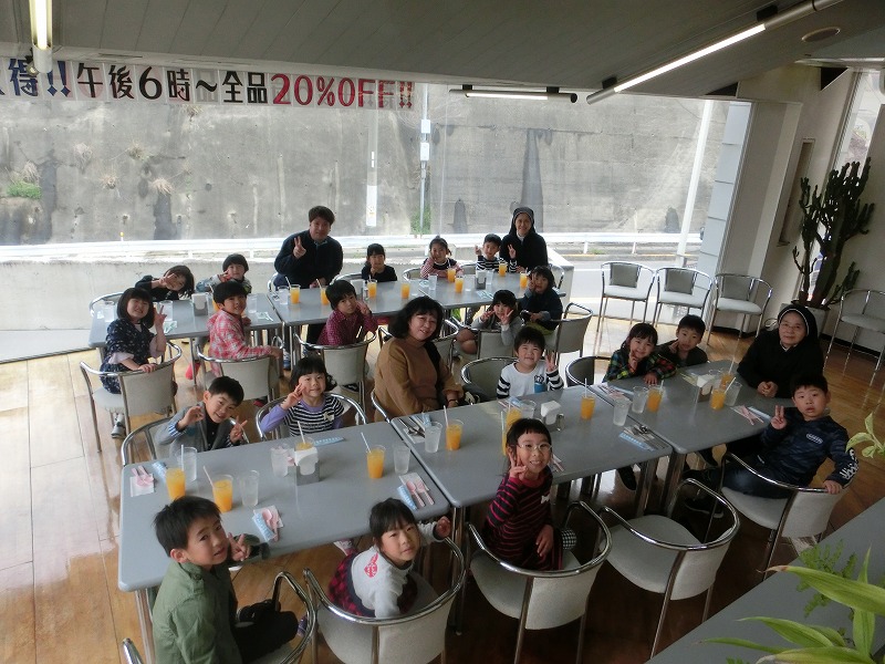 3月20日 さくらぐみさんお食事会 さくらぐみさんが、最後の思い出作りに戸町のペニーレインまで食事に出かけました\(^o^)/ エビフライやハンバーグ、お子様ランチを食べました。 いただきますをすると、腕まくりをする子もいて、お腹いっぱい食べて、とても嬉しそうでした♪ 帰りは、ララコープへ行き、100円分好きなお菓子を自分で選んで買いました。 自分で計算してみたりといい勉強になりました。 盛り沢山の一日になったようです!